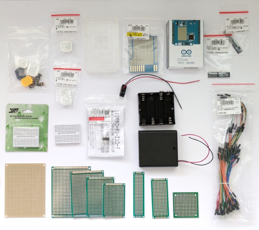 電子工作のパーツはたくさんあります。でも大きさが様々でまとめるのが難しく、机の上が散らかったり、持ち運ぶにも不便なことが多いです。