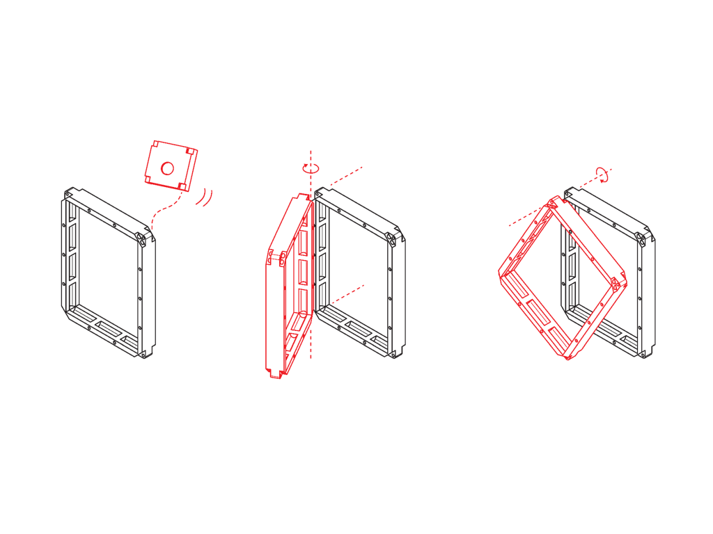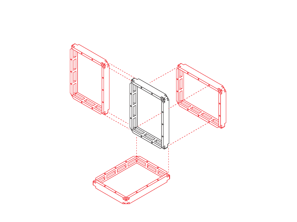 フレームの内寸は92*68mm。さまざまな電子部品に対応します。1つのフレームは「外部フレーム」と「内部ケース」からできており、部品に合わせた柔軟なカスタマイズを実現します。