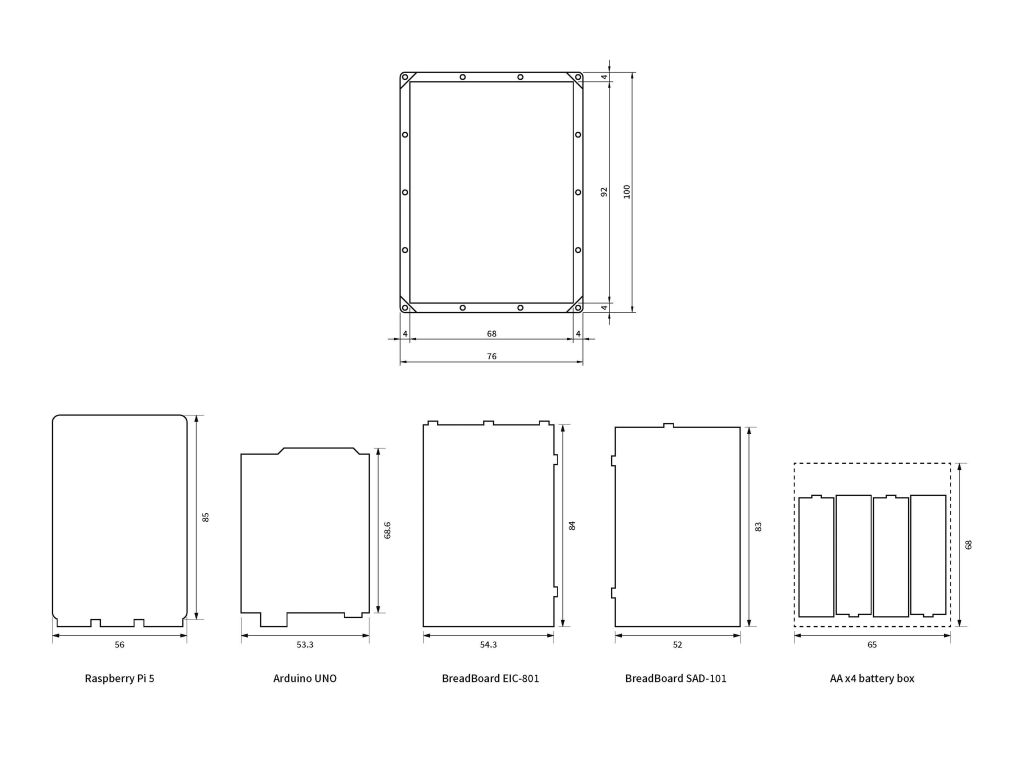 (* Raspi用、Arduino UNO用は例外で、外部フレームと内部ケースの区別がない一体型です。)